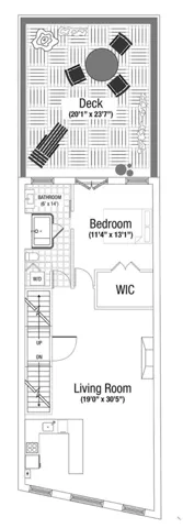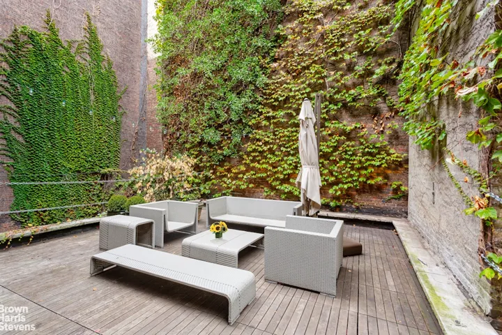 The quiet, North facing bedroom feels like a secluded sanctuary with direct access to the approximately 500 square foot private deck with lovely climbing ivy. There is plenty of storage with an enormous walk-in closet and other built-ins throughout. The Jack and Jill style bathroom is accessible from the bedroom and living room and is replete with spa quality amenities like a large steam shower and heated floors. The entire loft has automated shades there is also an in-unit washer/dryer.