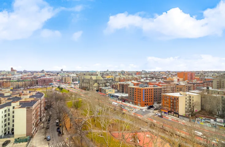 This high floor, 1-bedroom co-op apartment is move-in ready with refinished hardwood floors and freshly painted! The large L-shaped living room and dining area is bathed in sunlight from a wall of windows which look out onto an expansive skyline view!. The ample bedroom also has two exposures. A galley kitchen with stainless steel appliances complete your quiet oasis near restaurants, shopping, schools, parks and several modes of transportation. All utilities included. Fordham Hill Oval is a bucolic, 12-acre landscaped, gated community with 24-hour security with video surveillance, a playground, garage, laundry room, community room, patio seating areas, a senior citizens center and storage rooms. No dogs allowed. Buses: #12, 12-SBS, 10, Express Bus; Trains: #4, MetroNorth