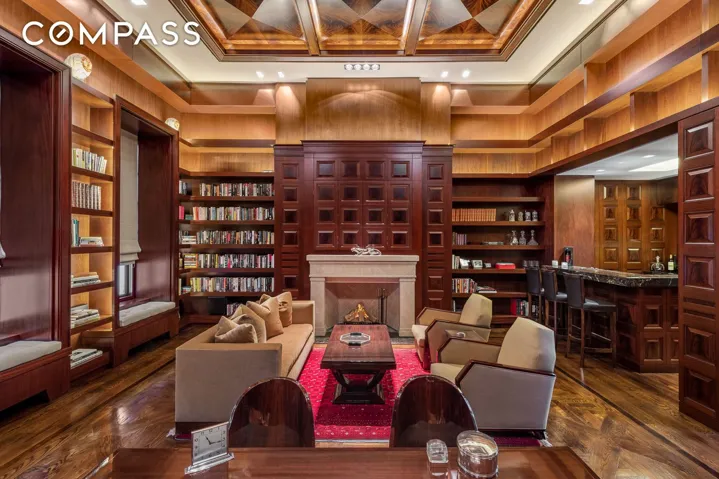The fifth floor is made up of the grand, double height paneled Library, including a separate wet bar and powder room, as well as a bedroom with en suite.