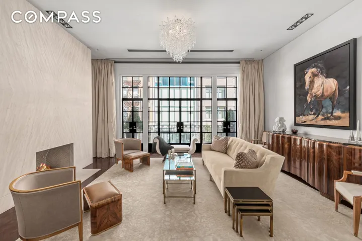 The home features four bedrooms, seven bathrooms (plus four half bathrooms) and nine fireplaces (three wood burning). The property was originally built in 1910 and was subsequently rebuilt in 2013 with the use of only the finest available finishes. No expense was spared in the ultra luxury renovation. In all, the home is 10,582 square feet with multiple outdoor areas (totaling 1,231 square feet) including an outdoor kitchen and patio, as well as a coveted pool with city views. Soaring ceilings (12 ft+ on most floors) and spacious room sizes can be noted throughout the home. The home also has a commercial grade elevator to access all six floors, radiant heated floor (even under the sidewalk outdoors), AV wiring throughout and extensive custom millwork. The exterior of the home, clad in limestone and brick, is framed by custom steel windows imported from England by Critall.