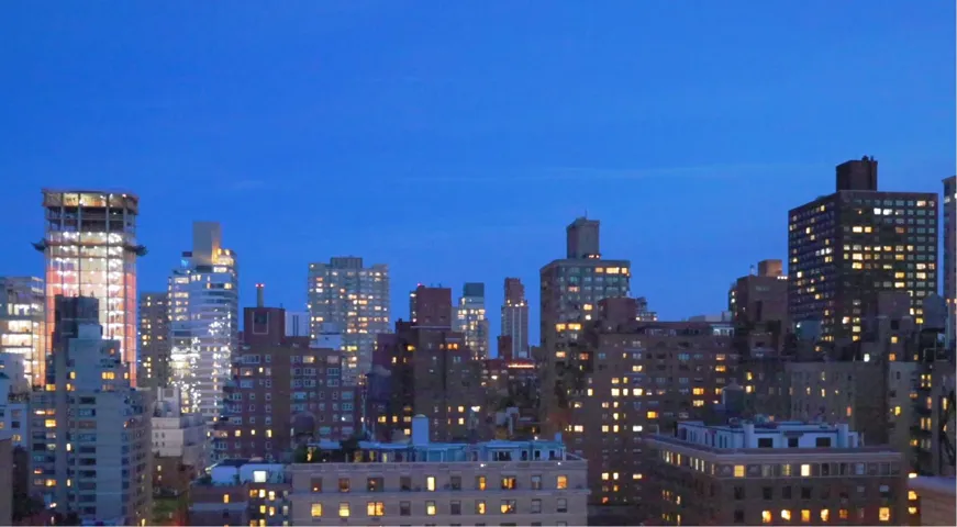 The dramatic Living Room is immense. Facing west over Park Avenue, it opens to two bookmatched terraces with southern views down Park Avenue and extraordinary western views of Central Park and the iconic Rosario Candela buildings that flank East 73rd Street across the Avenue. Nearby, an open Library accesses a gorgeous Guest Bedroom Suite by way of extraordinary bespoke glass and steel rolling doors. Within the Bedroom Suite, an ensuite bath glows with translucent glass walls.