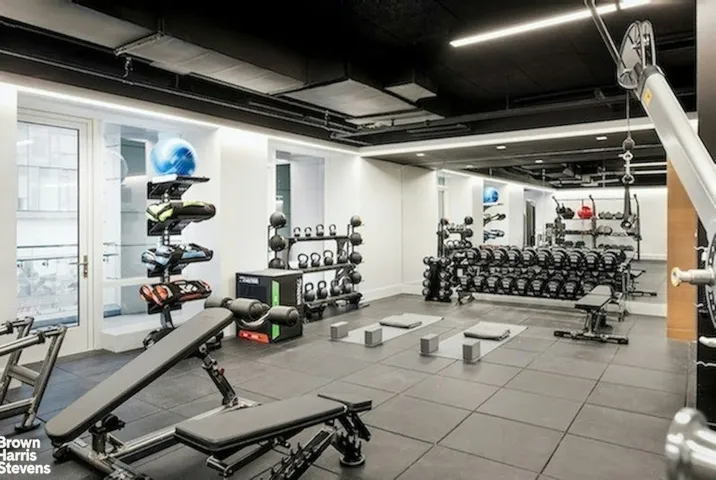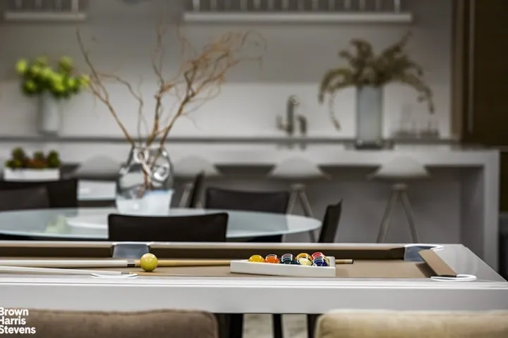 Amenities include a business center with four private study/Zoom rooms and a large meeting room; a Media Creation and Gaming room with Karaoke and musical instruments; a large and elegant lounge with a catering kitchen and landscaped terrace; a rooftop terrace with fireside seating, a kitchen with grill, and an outdoor shower; a windowed fitness center designed by The Wright Fit; a fun-filled playroom created by Silver Hill Atelier; as well as free bicycle storage.