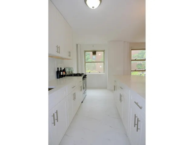 Move in Ready – Bring Your Toothbrush. Charming & Spacious 2 BR, 1 Bath (950 SF Approx), corner apt that has been newly renovated to create an open windowed eat-in-kitchen with island, all new cabinets & marble countertops & floors. Freshly painted, nice new wood floors & a new marble bathroom. Extra high ceilings, plus tons of closets (8 in total) completes this apt.