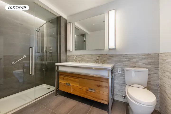 Appreciate the separation offered from the spilt layout and well proportioned rooms. The primary bedroom provides an oversized closet for maximum storage and en-suite bath with double sink vanity, stall shower, radiant heated floor and fixtures by LeFroy Brooks and Restoration Hardware. The second bedroom is similarly spacious with a shared bath built with higher end finishes.
