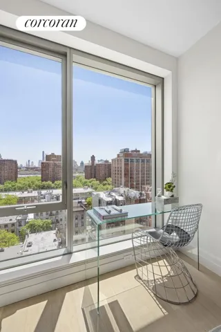 This light filled 564SF one bedroom has open views to the South East with massive windows which give way to picture perfect river views . The primary bedroom is nicely sized with a large closet and overlooks historic East Broadway.