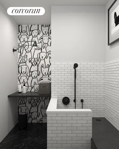 Unit 101 is a 1,881-square-foot, 3-bedroom, 2.5-bathroom layout that features a large L-shaped open kitchen with a central island. The living and dining area open onto a 1474 SQFT private backyard that is also accessible from each bedroom and the cellar. The guest bathroom boasts luxury finishes: a deep soaker tub, illuminated medicine cabinet, custom vanity, double towel bar, and porcelain tiles from Italy and Brazil, plus a built-in shelf with LED lights and radiant heat floors, combining comfort with elegance. The primary bedroom features an en-suite bathroom equipped with a custom-made double sink cabinet, illuminated double medicine cabinet, dual vessel sinks, wall-mounted faucets, porcelain tiles, a curbless shower with glass partition, and radiant heat floors. Additionally, the primary bedroom includes two spacious walk-in closets, providing ample storage and organization. The cellar features a half bathroom with features such as an LED Smart Mirror, floating vanity, porcelain and marble tiles, and radiant heat floors, ensuring both convenience and luxury.