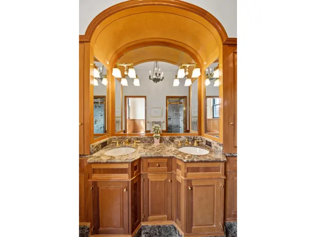The sprawling 2 bedroom apartment features four exposures with unobstructed Manhattan skyline views, beautifully planted wraparound terrace with irrigation system, enclosed sun room, library with a wet bar, chef’s state-of-the-art kitchen, formal dining room, pantry with full size wine cooler, private keyed-elevator, multi-zone central air conditioning, unique mahogany doors, oak hardwood floors, two wood burning fireplaces, laundry room, and generous closet space. The graceful layout provides an easy flow into each room with ultra-high ceilings and charming prewar details. The apartment is perfect for entertaining on a grand scale.