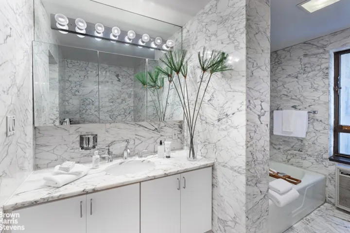The luxurious corner primary suite features North and East exposures, a private dressing room with individual climate control, two oversized walk-in closets, and a marble windowed bath with separate tub and shower. All secondary bedrooms offer en-suite marble baths, generous closets, and beautiful natural light.