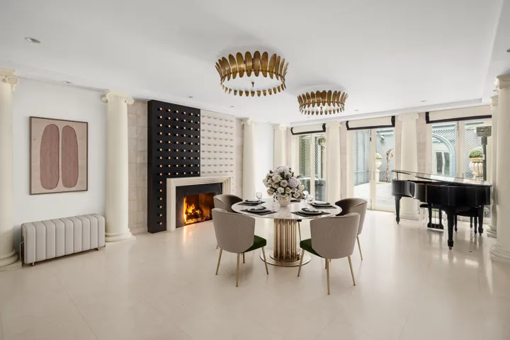 116 East 61st Street stands as a beacon of elegance and sophisticated living in the heart of Lenox Hill, off the prestigious Park Avenue. This single-family townhouse, meticulously restored and once the domain of an internationally renowned interior designer, merges historic charm with modern luxury across its five-storied, triple-mint condition facade. With an impressive 5,750 square feet of living space, the residence boasts a myriad of amenities including a custom artisan elevator, central air conditioning, a Crestron System for modern convenience, and a security system ensuring peace of mind. The gated entry opens onto the garden level and unveils an elegant white exterior, leading into a contemporary chef’s kitchen on the first floor, complete with French limestone floors, Venetian plaster walls, a breakfast booth, island seating, and pocket doors for an intimate dining experience. The spacious dining room, adorned with a working fireplace, connects through three large French doors to a sun-filled, south-facing garden, presenting a perfect backdrop for grand gatherings. Ascending to the parlour level, one finds a palatial living room with soaring 12 ft ceilings, neoclassical moldings, and open views, complemented by a sophisticated library across the landing, featuring built-in banquettes, deluxe wet bar, and an additional fireplace. The third floor is dedicated to a luxurious primary suite, featuring high ceilings, fireplace, and an ensuite marble bathroom with a separate tub and shower, leading into an expansive dressing room. The fourth floor houses two additional large bedrooms, both with ensuite baths and picturesque views, highlighting the home’s thoughtful design—blending single-family comfort with Park Avenue elegance. The pinnacle of the residence is the rooftop terrace, offering sweeping city views and an ideal setting for entertaining On the lower level of the townhouse, a full-height, finished basement includes a gym, a large laundry room, and ample storage space, rounding out the home’s extensive amenities. 116 East 61st Street is a masterpiece of design and craftsmanship, offering a unique blend of privacy, luxury, and convenience in one of Manhattan’s most desirable neighborhoods, making it a truly exceptional place to call home.