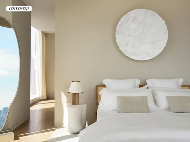 Upon arrival, a private elevator landing opens to a grand entrance gallery with double-height ceilings and sweeping vistas from the East River to the Atlantic Ocean. A generous corner great room offers stunning views of Central Park, while the southeast-facing formal dining room highlights iconic sights of both the Chrysler Building and the Empire State Building.