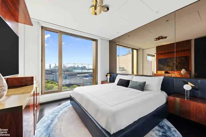 The primary suite is a sanctuary of luxury, featuring a custom-built bed and headboard crafted by New Day Woodwork, along with direct river views and a spa-like five fixture bathroom for the ultimate retreat. Each of the two ensuite bedrooms were designed for ultimate comfort in mind, evoking the feeling of a luxury yacht retreat, complete with ebonized herringbone floors and sophisticated millwork, smoked glass and built-ins defining the individual spaces. Abundant closet space and integrated storage solutions ensure everything remains concealed and organized.Residence 7B is truly turnkey, offering advanced home technology with robust supercharged wi-fi, custom LED lighting reminiscent of MoMA, and every modern convenience you could desire.