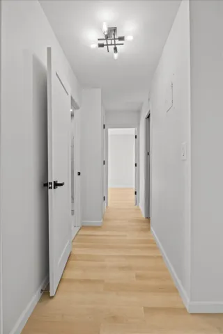or morning coffee. Off the entry, you’ll find a long hallway flanked by a huge storage closet, a