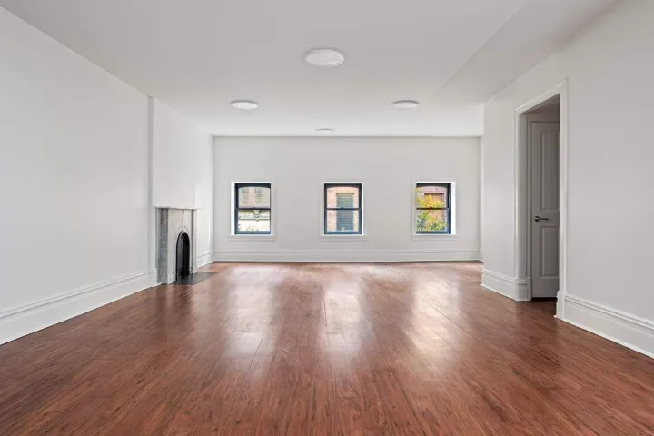 Enter up a classic stoop through original double doors into a tiled vestibule which leads to another set of original inner doors. These doors open to a long gallery on the parlor floor.