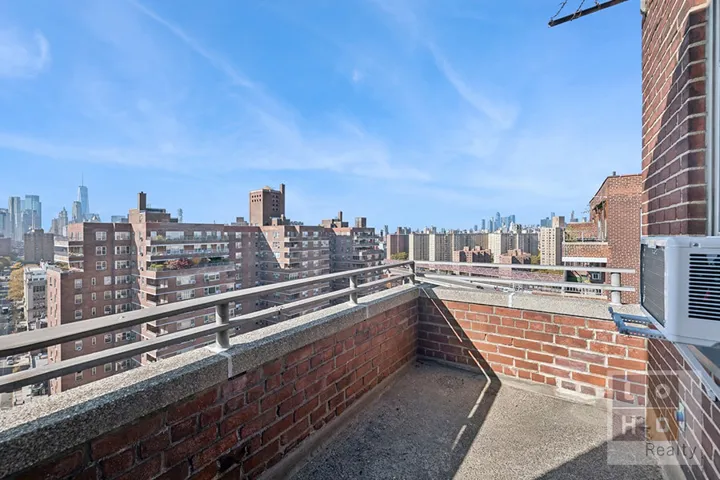 Top-floor renovated one bedroom/balcony apartment featuring stunning views of the Freedom Tower, East River & downtown city skyline! This 21st floor apartment, has a spacious and bright living room with a wall of windows facing north with an additional window and glass pained door leading to your own private balcony facing west. The windowed kitchen has been renovated to include elegant & timeless grey cabinetry, white quartz countertops and white subway tile backsplash. At the opposite end of the apartment is the king-sized bedroom with walk-in closet & and the full bath. Large entry/foyer, newly refinished/black stained parquet flooring and three (3) additional large closets throughout!