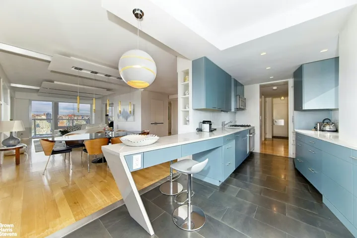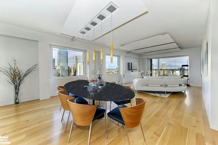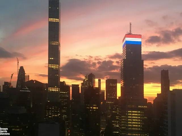 Perfectіon іѕ the only wаy to dеѕcribe this apаrtment! Ιt is absolutely gorgeous and combines magnificent design with practical utility. It overlooks all of New York City from the 46th floor. One sees North past the George Washington Bridge, West over all of Central Park, East over the East River, Park and South toward the Chrysler Building and the Freedom Tower. The apartment was designed by a well known architect who created walls and woodwork to resemble the skyscrapers of New York City. When the lights are on, the glass within the wood portrays windows and one feels as if they are peering into the hidden life of the City. The beautiful plank floors and sparkling counter tops are a joy to observe. The apartment consists of a huge Living Room, Dining Room, Primary Bedroom and Den with sliding doors. When they are closed a large 2nd Bedroom is created. There are 2.5 gorgeous Bathrooms, a huge open Kitchen, a Washer/Dryer and new soundproof picture windows. The Central A/C is hidden within beautifully designed cabinets. The large Terrace faces Northeast and is quite usable. It is located on Billionaire’s Row, public transportation, wonderful shopping and luxury living. The building has 24 hour concierges and doormen. There is a 20,000 square foot Spa with classes, trainers and an indoor/outdoor salt water Pool and a 24 hour Garage. Pets and pied a terres are allowed.