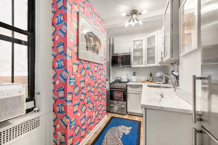 Welcome to Apt. 1G at 235 E 73rd Street. A full-service pre-war coop designed by Emory Roth in Manhattan’s vibrant Lenox Hill neighborhood. Enter this serene home through the elevated foyer featuring a custom closet before stepping into your spacious living room. The impressive high ceilings throughout the apartment add depth and elegance, creating distinguished areas for dining and a home office. The bedroom area provides ample space to relax, whether you’re sitting at the bedside or turning in for the night. The updated kitchen, equipped with stainless steel appliances and marble countertops, completes this alluring apartment, giving it a welcoming atmosphere.