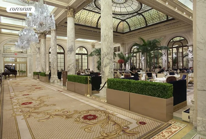 The grand suite with a private door to the landscape terrace. The second guest suite faces the beautiful landscape terrace also, and nicely appointed with a custom closet. The stunning kitchen has custom-made cabinetry, beautiful Nero Marquita stone countertops, white mosaic Calcutta marble backsplash, and top-of-the-line stainless steel appliances by Viking and Sub Zero And two zoned central-air for this unique and special apartment. The Palm Court, Guerlain Spa, Grand Ballroom, and Terrace Room. Experience Manhattan’s premier living destination, proximity to Central Park, glamorous Fifth Avenue shopping, internationally acclaimed fine dining, and the best of New York City.