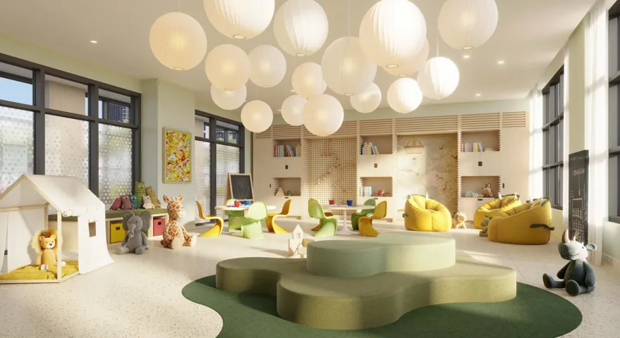 Residents at The Huron enjoy over 30,000 square feet of curated amenities and direct access to the maturing Brooklyn waterfront. Active spaces include a 50-foot indoor saltwater pool overlooking the river, a state-of-the-art fitness center with Peloton bikes, a movement/dance studio with mirrors and ballet bars and separate locker rooms with a sauna. There is a stunning resident’s lounge with pool table, a formal dining room, a co-working area with pods, booths, and conference space, a game room, and a children’s playroom. Outdoor spaces include a manicured waterfront promenade, an 8,000 square foot private park with recreation areas designed for kids, and two sprawling rooftops with awe-inspiring views of the iconic Manhattan skyline. Additional services include 24-hour concierge, private storage, on-site attended parking, a pet spa, a bicycle room, and a package room with cold storage.