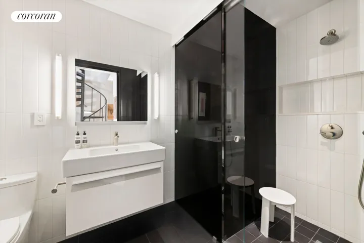 Recent upgrades include Savant and Lutron controls for lighting, thermostats, shades, audio/video with ceiling speakers on each floor, and an upgraded video intercom with smartphone access. The apartment also features central AC, attic storage space within the apartment, and in-unit laundry on the bedroom level. You will also find a second entrance to the apartment on this level.