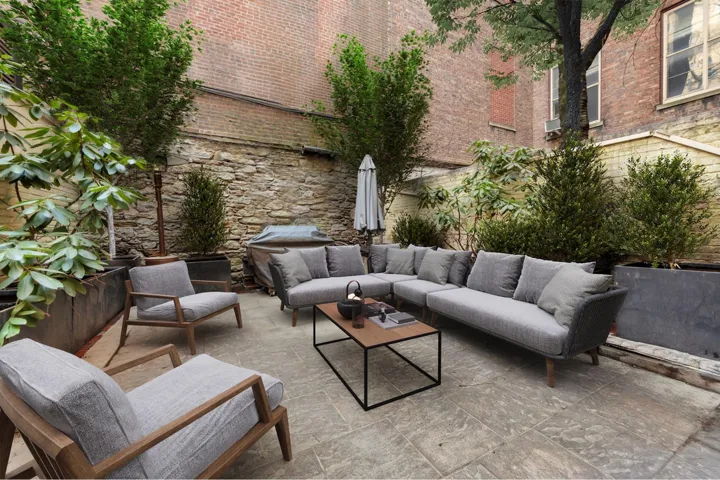 Spanning over 7,000 square feet (650 SM) with a 20″ x 57″ footprint on a 102″ lot, the property is currently configured as three elegant duplex apartments. It is an excellent opportunity for investment, multi-generational living, or easy transformation back into a single-family or two-family residence. Each unit is outfitted with high-end kitchens featuring Viking appliances, as well as private outdoor space, in-unit washers and dryers, Sonos sound systems, central air conditioning, central vacuum, and private keyed elevator access.