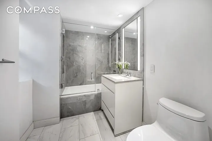 Simply stunning brand-new condominium at 12 East 88th Street. Welcome to this designer two bedroom, two-and-a-half-bathroom home, pin drop quiet with an expansive living and dining room. Flanked by gorgeous new oak wood flooring, views of townhouses and leafy green tree-tops! A large entry foyer greets you with 2 large closets, and a large in unit washer and dryer. The oversized Chef’s kitchen with windowed eating area is equipped with a Wolf oven and 6 burner stove, a Subzero refrigerator, dishwasher and extra-large 175 bottle wine refrigerator. Design elegance at every opportunity the kitchen has gorgeous wood cabinetry and sleek Covelano Oro marble countertops and a backsplash. The expansive prime suite features three customized closets, an en-suite, five-fixture bathroom with Dolomiti White marble walls, floors and counters, an oversized soaking tub, a separate shower and double sinks. The second bathroom features generous custom closets and a marble en-suite bathroom. Conveniently located between the living room and kitchen is a beautiful powder room outfitted with Calcutta Oro marble countertops, walls, and floors, a Waterworks tilt mirror and polished chrome fittings.