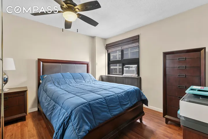 The large living room features a private balcony with eastern views of Downtown Manhattan and the iconic Brooklyn Bridge—an ideal spot to relax and take in the scenery. The separate, generously sized kitchen boasts ample storage space and modern stainless steel appliances. Throughout the apartment, you’ll find plenty of closet and storage options, and an abundance of natural light floods the space, creating a bright and welcoming atmosphere.