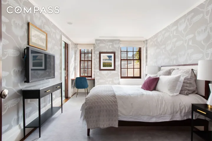 Ascend to the upper floor vestibule and behold a masterfully landscaped (48’ x 17.5’) terrace that offers glorious California-styled outdoor living! The first of three terraces has an inviting living room area with gas fireplace, and larger separate dining area and an extraordinary outdoor kitchen with a built-in Wolf gas grill. A unique amenity, discreetly located around the corner of this terrace, is a 6 person built-in hot tub that enjoys wonderful southern open sky and city views. Also on this upper level, a generously sized primary bedroom suite has its own seductively private terrace, side by side spa-like bathrooms with radiant heated floors, a sauna, and separate study or home office and a large walk-in closet, the fourth bedroom with ensuite bath, and a lovely second study (or second home office) with enchanting western views onto the terrace and open sky beyond.