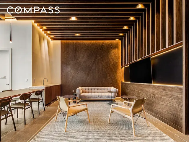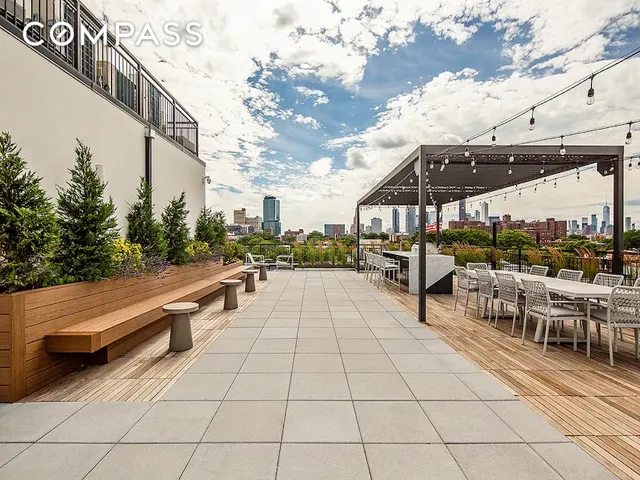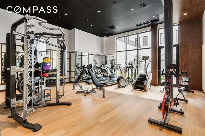 Two common outdoor spaces — a central Zen courtyard and a spectacular roof deck with an outdoor kitchen and sweeping Manhattan views