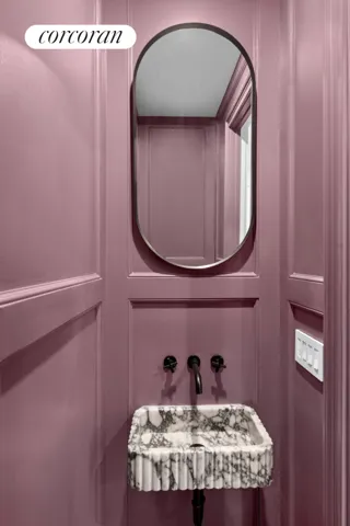 The expansive owner’s duplex features herringbone white oak floors, central A/C and heat, sconce lighting flanking the original mantle, a thoughtfully designer powder bathroom with custom natural stone sink and a functional and tucked away dining nook off the kitchen.