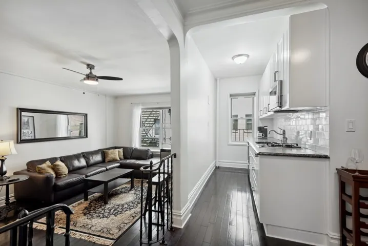 Low Maintenance! Luxury and Pre-War charm meet in this perfect studio, that is easily converted to a 1 bedroom! Enter into a generously-sized dining/foyer, and delight in the exquisite renovations throughout this spacious Pre-War studio. The windowed kitchen features brilliant white cabinets and back splash, contrasted with stunning custom black stone counter tops. There are stainless steel appliances, including a microwave, and top of the line under counter freezers and refrigerator, this kitchen is designed to utilize all available space. You get the separation you need with steps down into the spacious sunken living area. Feel the comfort this spectacular apartment has to offer in the most desirable Lincoln Square building. The Tristan, 29 West 64th Street, is an Art-Deco, boutique co-op on an idyllic tree lined, Central Park block. Enjoy living in this pin-drop quiet apartment! Located in the middle of the most cultural part of the city, with Lincoln Center on one side, the park on the other side. The bathroom is clean and bright with white subway tiles and a gorgeous woven tile floor. Set above the ground floor, #1F has nice light, views looking onto the backyard, gorgeous high ceilings, dark hard wood floors and plenty of Closets. Private showings only. 29 West 64th Street is a supremely well-run elevator building with a laundry rooms, part time doorman, live-in super. Central Park, Lincoln Center, world-class culture, cuisine, shopping, transportation, & much more. The building was constructed in 1938 and features 31 units.