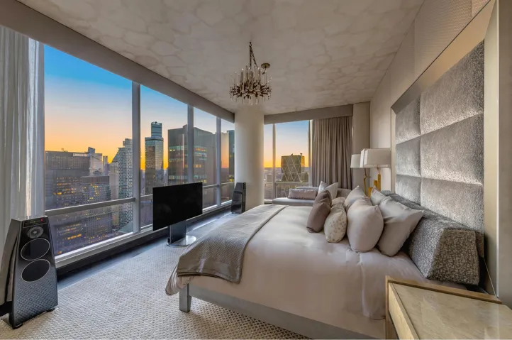 Framed by soaring 11-foot ceilings, the nearly 43-foot Grand Salon enjoys triple exposures and delivers a cinematic vantage point over Central Park, the skyline, and both rivers-an awe-inspiring setting for grand entertaining or everyday living. The massive eat-in kitchen, the largest at One57, is handcrafted by Smallbone of Devizes and features dual islands and four floor-to-ceiling windows, flooding the space with natural light.