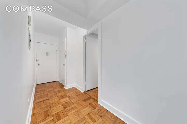 The main living space is a breath of fresh air—literally. Oversized windows flood the room with natural light, bouncing beautifully off the classic parquet floors. Clean, white wall create a crisp, gallery-like backdrop for your personal style.