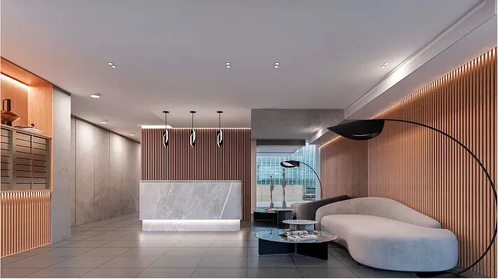This exceptional three-bedroom, two-and-a-half-bathroom duplex features a home office, media room, and private outdoor space, all accessed through your own private entrance directly off 18th Street, offering the feel of a townhouse within the full-service luxury of the Chelsea Modern.