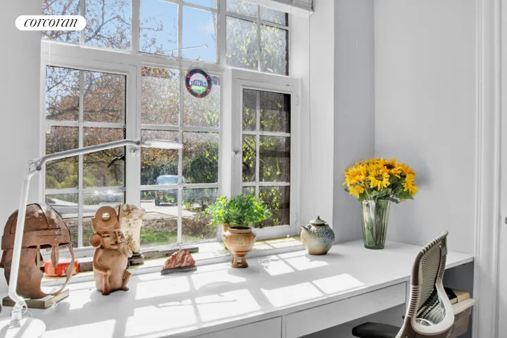 Welcome to an utterly enchanting 2 bedroom/ 1 bath residence at Hudson View Gardens. Situated on tree-lined Pinehurst Avenue, Apartment H-14 is a graciously proportioned Garden-level home that has unique and historic attributes, including embossed ceilings. The original resident in 1924 was an architect from Ireland, and his key designs and millwork have been lovingly maintained. Upon entering, you are greeted into a pleasant foyer with an enormous closet that leads to the spacious living room and the kitchen. The large living room with views of the gardens faces south with beautiful light throughout the day. The renovated eat-in kitchen has pristine white cabinets with stainless-steel appliances (LG fridge, Viking stove, Frigidaire Professional dishwasher) and features Caesarstone counters, Mother of Pearl mosaic tile, and Terrazzo tile flooring. The architect designed the distinctive windowed dining area with striped tiger oak paneling and cabinets – a rare wood in our times and a historian’s delight! Both bedrooms are comfortably large. One bedroom faces south and looks onto the gardens with flowerbeds and flowering trees. The second bedroom faces north and has a built-in bookcase made of the same rare wood as the dining room. The renovated bathroom has classic subway tiles and basketweave marble flooring. There are 6 closets in total, with one being the extra-large one at the entry. Come be a part of this historic and welcoming community in Hudson Heights and be embraced by lush greenery and nature every day. (The monthly maintenance is $1,874.30, there is an on-going capital assessment of $328.32/month, and the 1 installed AC charge is $30.30/month, which totals $2,232.92/ month)