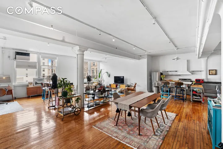 Currently open-plan, with potential to create a 2-bedroom, 2-3 bathroom home. The open space, high ceilings, and columns maintain the authentic Soho artist loft vibe while offering layout flexibility.