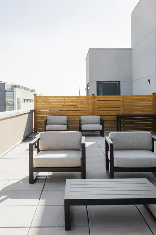 The Marx is a boutique condo in the heart of the Kaufman Arts District, offering a virtual doorman, gym, resident lounge, laundry room, bike storage, and a furnished roof deck with grill.