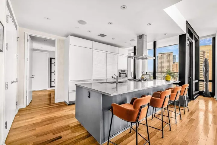 Additional highlights include smart home integration for lights, blinds, and sound; enhanced lighting throughout the kitchen and baths; electric blinds in every room; and a large pantry with in-unit washer and dryer. In addition, every closet has been fully customized to optimize organization and storage.
