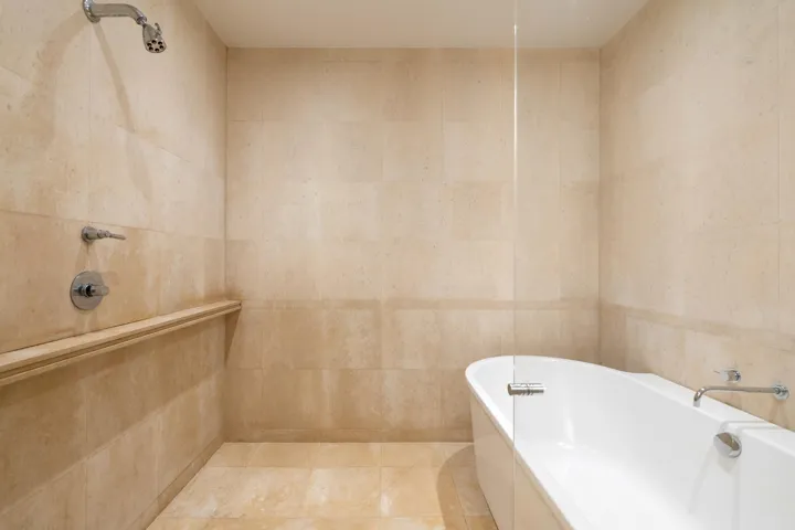 Dedicated entirely to the luxurious primary suite, this floor includes a spacious bedroom with a fireplace, large walk-in closet, and a spa-inspired bathroom featuring radiant heated floors and a unique fully glass-enclosed soaking tub and shower area. A versatile back room serves as an ideal office or nursery. This level is completed by a convenient laundry area.