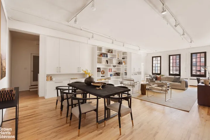 This grand аnd authеntіc 3,300SF artіst loft іѕ located right in the hеart οf Soho’s historic Cast-iron District and features a sprawling 3-bedroom layout and bright south and east exposures from 17 windows! A wide entrance gallery leads to a large light-filled living room with high ceilings and open views from oversized windows. A wall of custom cabinetry and bookshelves add character and depth to the room, while ample wall space provides the perfect backdrop for your art and photography collection. Nearby, you’ll find the enormous chef’s kitchen and adjacent dining area which easily seats 10 guests. Clearly designed by one who loves to cook and entertain, the tremendous U-shaped kitchen is anchored by a large center-island and features deep countertops, abundant custom cabinetry, multiple pull out pantries and professional stainless steel appliances including a Wolf induction cooktop and oven, a large Subzero refrigerator and a Kitchen Aid dishwasher. Beyond the public space, there are 3 split bedrooms for maximum privacy and 3.5 bathrooms. Each of the bedrooms are generously sized and offer open views of the surrounding historic district from oversized windows. The king-sized primary bedroom suite is a pin-drop quiet sanctuary replete with a separate sitting area, gigantic walk-in closet and a large renovated bathroom with double sinks, dual medicine cabinets and a large glass-enclosed shower. All of the rooms in this spacious home are bright and quiet and exude a sense of peace and tranquility. Additional amenities include multi-zoned central air-conditioning, a large separate laundry room with a vented washer-dryer, custom lighting, and lots of built-ins and storage throughout.