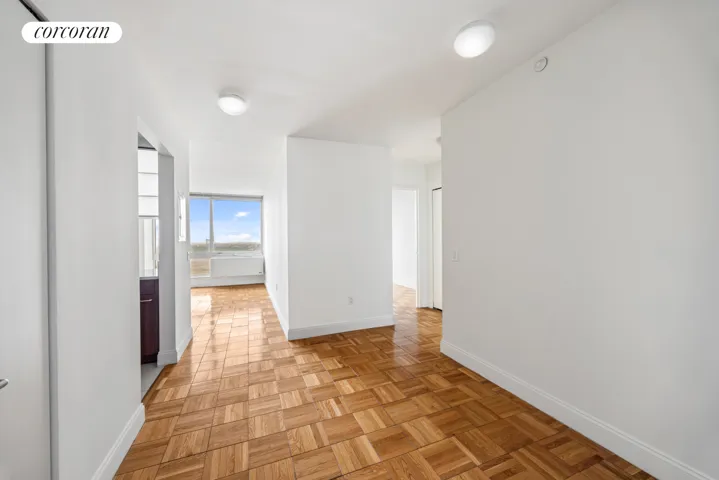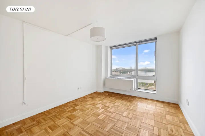 Rarely available and priced to sell.. this spacious, bright one bedroom and one bathroom apartment faces directly on the East River. Every window affords an intoxicating view. Additional highlights of this stylish apartment include a generously-sized foyer, state-of-the-art kitchen and bathroom, parquet floors and ample closet space. The kitchen boasts stainless steel Kitchen-Aid appliances, a Miele washer and dryer, frosted glass and dark wood cabinets and granite counter tops. The bathroom is equally up-to-date and attractive. The floors through most of the apartment are medium- toned parquet, which enhances the refined space. There are two double closets and one single closet.