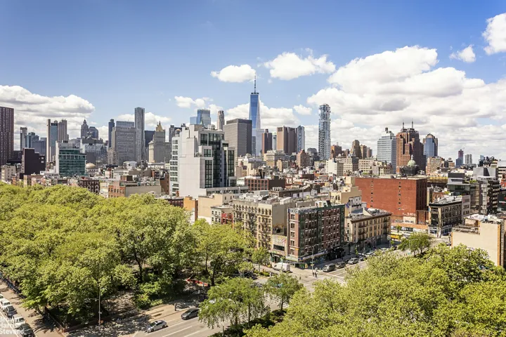 Welcome to the highly coveted “D” line – a corner apartment with the most extraordinary 270 degree views and abundance of sunlight throughout the day. Wake up to unobstructed park & Empire State Building views, later watch the sun set behind your panoramic vistas of the Freedom Tower. Fantastic split bedroom layout, windowed open chef’s kitchen, 2 full baths and oversized private balcony. Additional highlights include Oak flooring, floor to ceiling windows, individual zoned heat/AC, 9 ft. ceilings, excellent closet and storage space, and a W/D that vents out. Onsite garage parking (fee) available as well as a 24 hour concierge, storage (fee) and roof deck. Located on the corner of Nolita/LES & Chinatown with great access to transportation and all the best Manhattan has to offer.