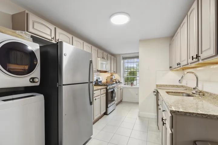 This townhouse boasts classic pre-war elegance, beautifully combined with modern conveniences such as the option for in-unit laundry. Conventional architectural details harmonize with contemporary living, creating a warm ambiance throughout the home.