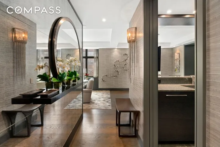 Step into a 34-foot-long living and dining expanse, seamlessly integrated with a custom office nook—ideal for both entertaining and everyday living. Oversized windows frame the spectacular private terrace, offering panoramic views and abundant natural light.