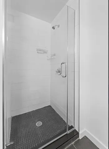 The apartment has an ideal open concept kitchen boasting sleek Quartz countertops, marble backsplash, high end stainless steel appliances, and gorgeous custom white cabinetry. With a massive bedroom, you have an optimal layout for maximum flexibility in how to arrange your home. A spacious bath with white cabinetry, beautiful handcrafted fixtures, and a lovely glass encased walk-in shower complete this phenomenal home.