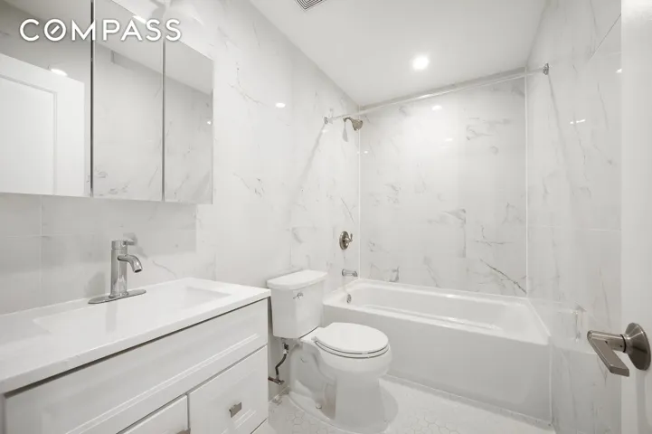 This fully vacant townhouse is configured as a spacious owner’s triplex above a one-bedroom rental unit. The parlor level showcases soaring ceilings, restored original details, a grand floor-to-ceiling mahogany mirror, oversized windows, and a decorative fireplace. The open chef’s kitchen is designed for entertaining, featuring quartz countertops, a large island, stainless steel appliances, and custom cabinetry, leading to a private deck and backyard access. The third floor hosts a luxurious primary suite with a marble-clad bathroom, soaking tub, and glass-enclosed shower, along with an additional bedroom and full bath. The top floor offers three more bedrooms, two full bathrooms, and a skylight flooding the space with natural light.