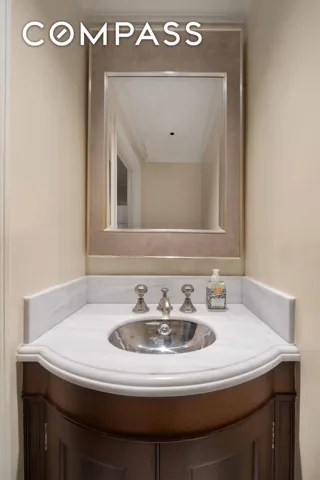 This remarkable residence features exquisite bespoke finishes throughout, including P.E. Guerin bathroom faucets and fixtures, as well as doorknobs and handcrafted French door handles in the dining room—a nod to the finest artisanal metalwork in the world. Walls swathed in cashmere and silk by Colefax and Fowler elevate the interiors with a refined softness and understated grandeur rarely seen in contemporary offerings.
