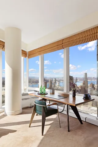 Perched high above Manhattan on the 71st floor of the prestigious Residences at the Mandarin Oriental, this exceptional apartment at 80 Columbus Circle blends luxury, sophistication, and panoramic views designed by Jacques Grange. Move-in ready, this residence features 4 bedrooms, a library/den, and expansive living and dining areas, the residence is designed to offer both comfort and grandeur. Floor-to-ceiling windows frame stunning sunrise and sunset vistas over Central Park, the Hudson River, and the Manhattan skyline, flooding the space with natural light.