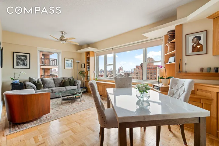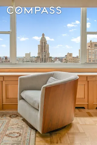 Upon entering, you’re immediately drawn to the oversized corner windows, which showcase gorgeous, unobstructed city and sunset views with southern and western exposures. Perched on the 20th floor, the home is bathed in natural light, offering stunning NYC vistas that shine by day and sparkle by night.