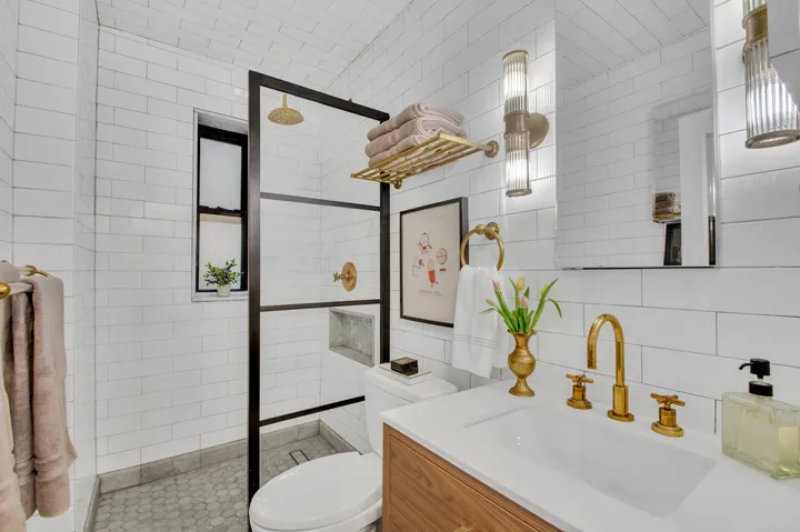 The newly updated bathroom (2018) boasts a modern design with classic subway tile and a durable cast iron shower frame. The windowed kitchen, renovated in 2013, combines functionality with charm. Throughout the home, elegant glass Art Deco doorknobs add a touch of vintage sophistication!