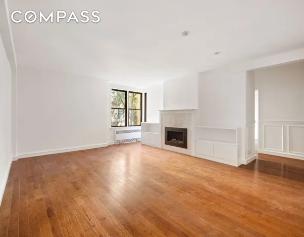 Overlooking the building’s serene private courtyard with lush trees and garden landscaping, the home offers a peaceful retreat from city life. Additional highlights include newly installed hardwood floors, customized closets, and a decorative fireplace that enhances the warm, inviting ambiance.